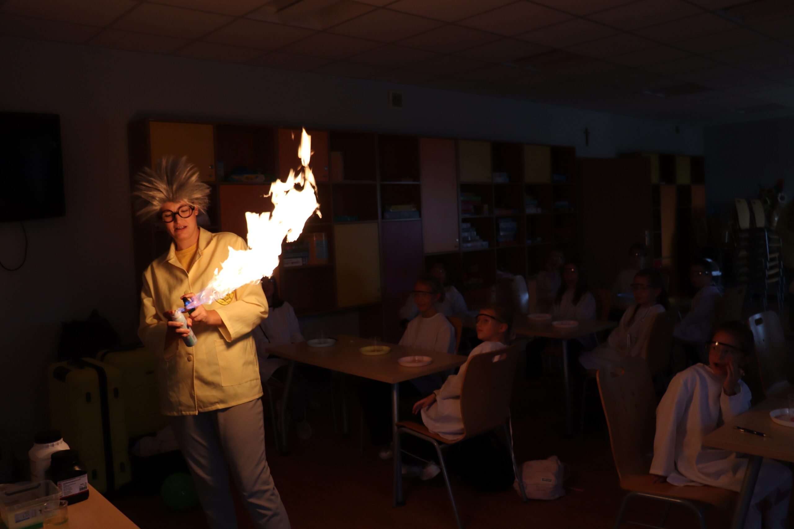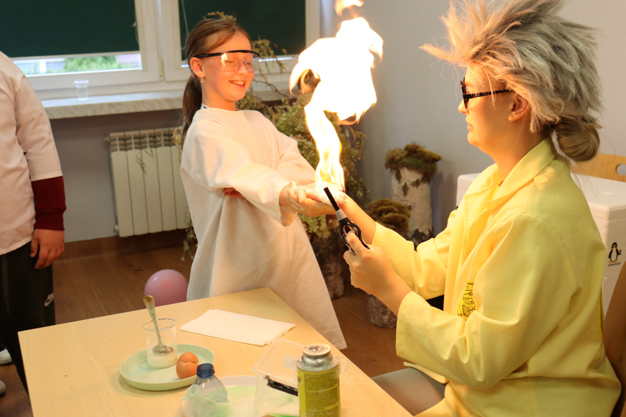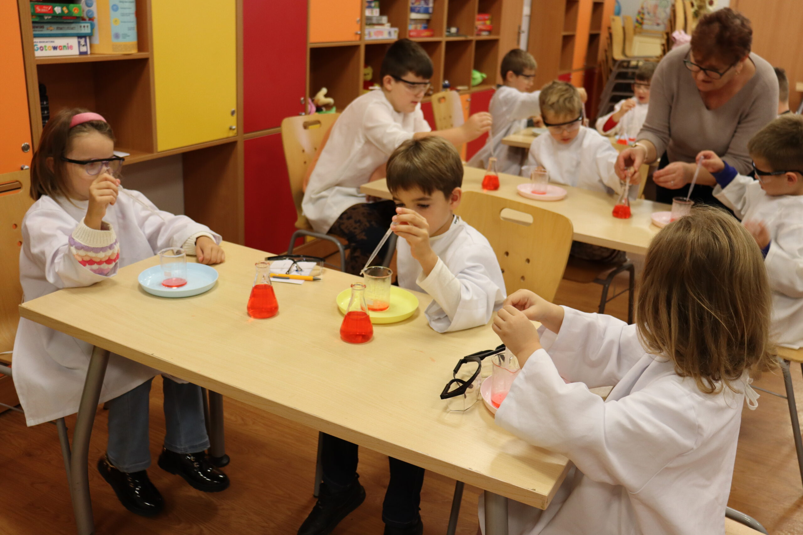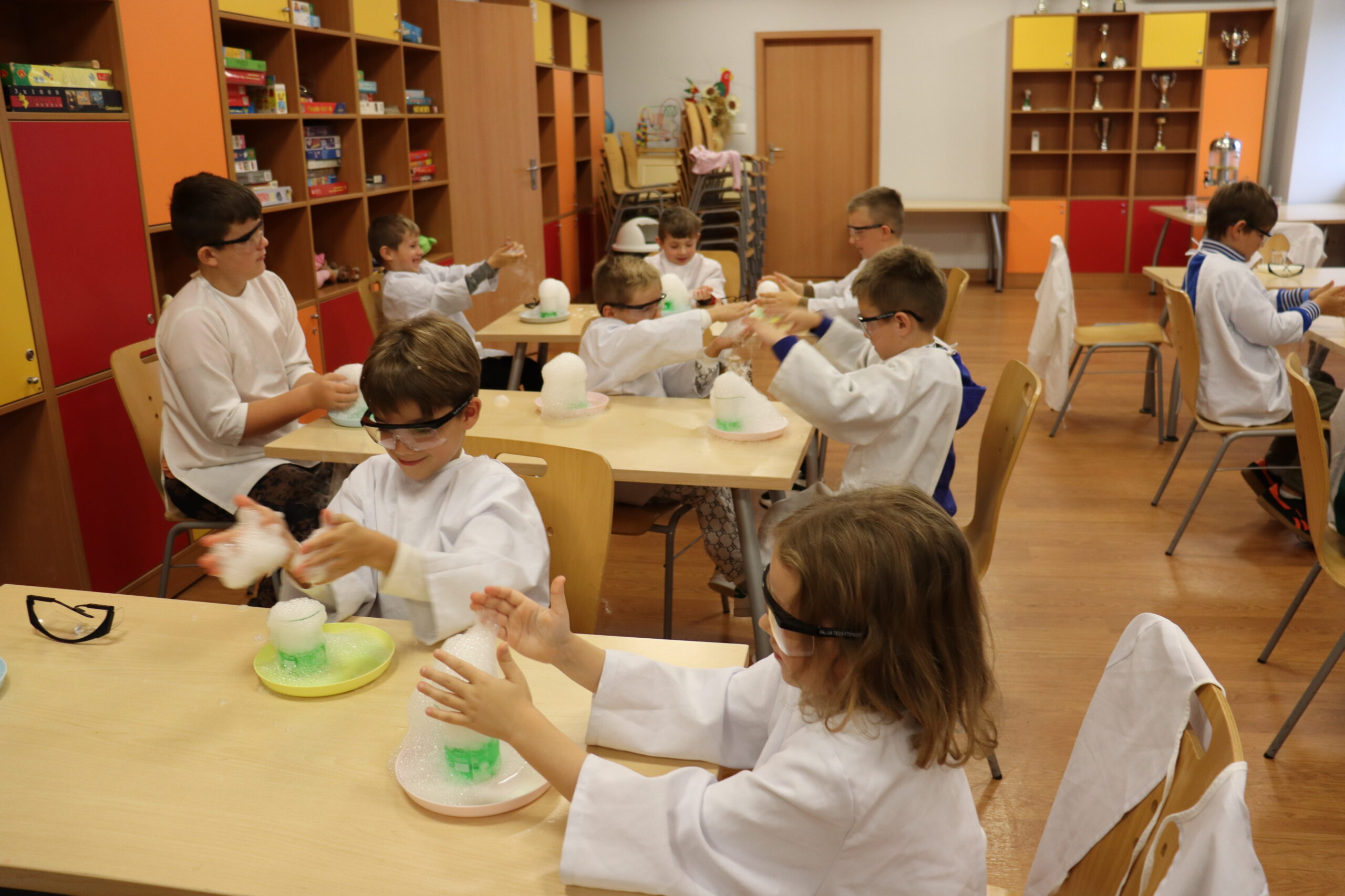 Po części oficjalnej dzieciaki podzieleni na grupy odbyli warsztaty chemiczne przeprowadzone przez firmę Zdobywcy Talentów oraz szkolenie z pierwszej pomocy przeprowadzone przez strażaków z OSP w Popowie Kościelnym