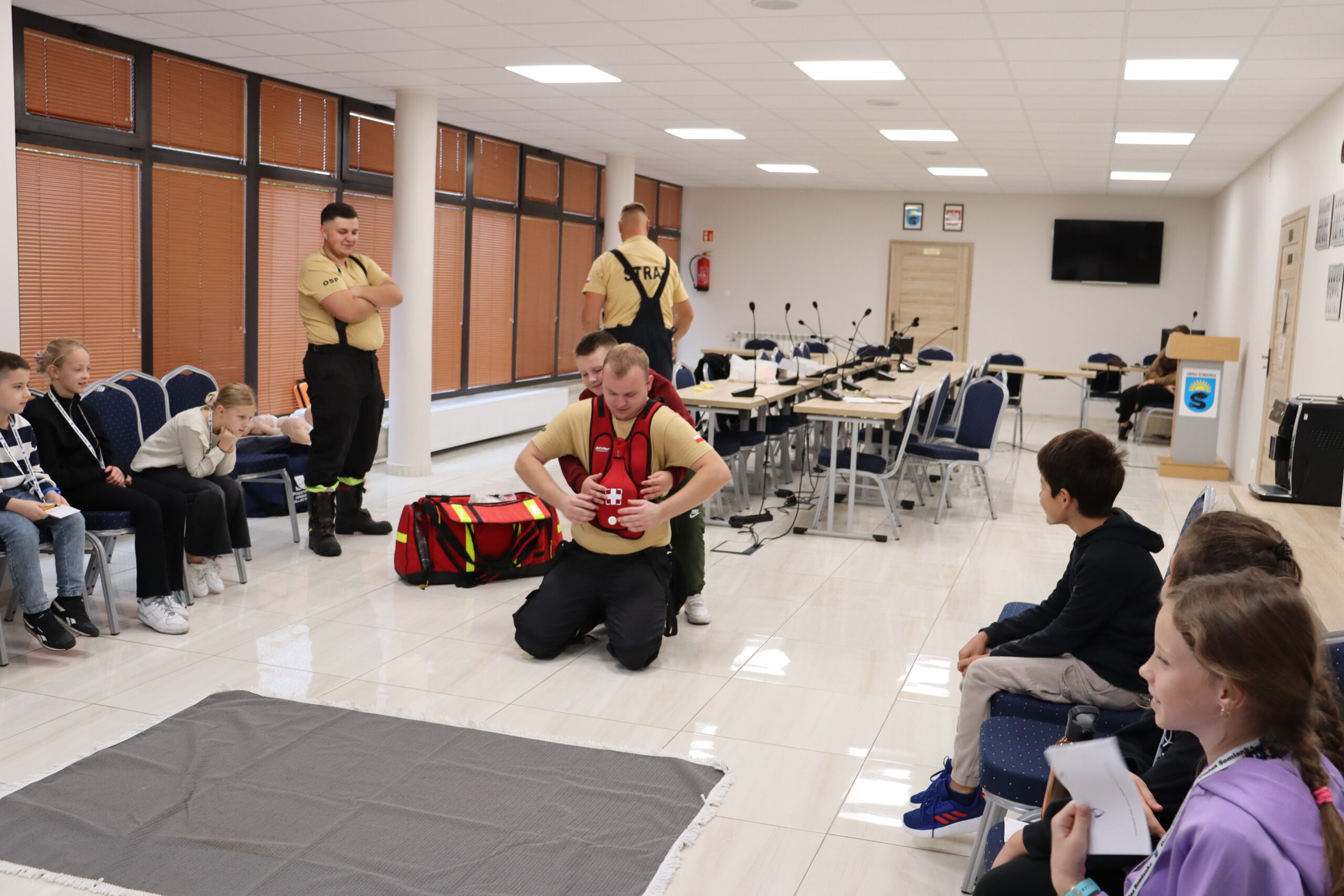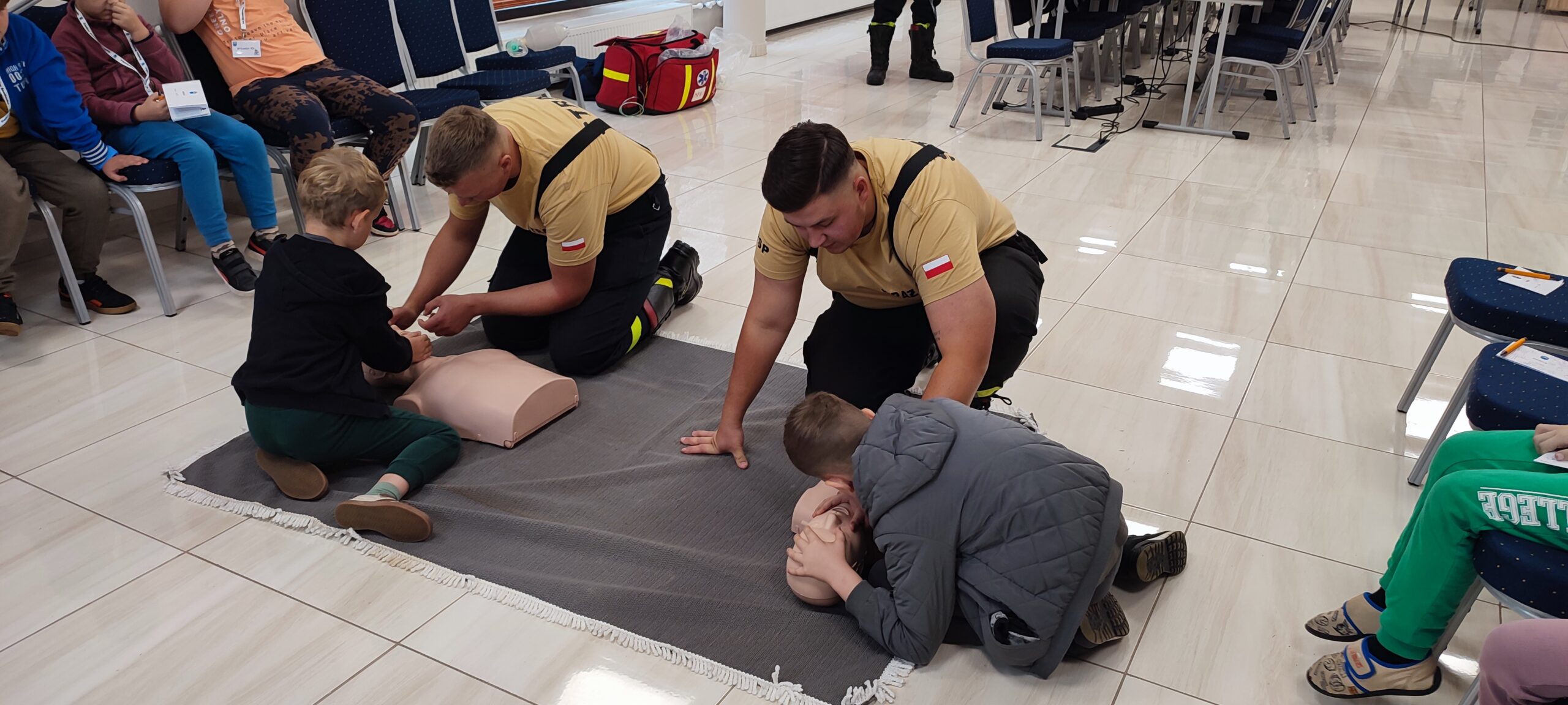 Studenci odbyli również szkolenie z pierwszej pomocy na fantomach, które obejmowało część praktyczną, podczas której uczestnicy ćwiczyli resuscytację krążeniowo-oddechową (RKO) z użyciem AED oraz m.in. udzielanie pomocy w zadławieniach, opatrywanie ran i reagowanie w sytuacjach kryzysowych, takich jak drgawki czy omdlenia.