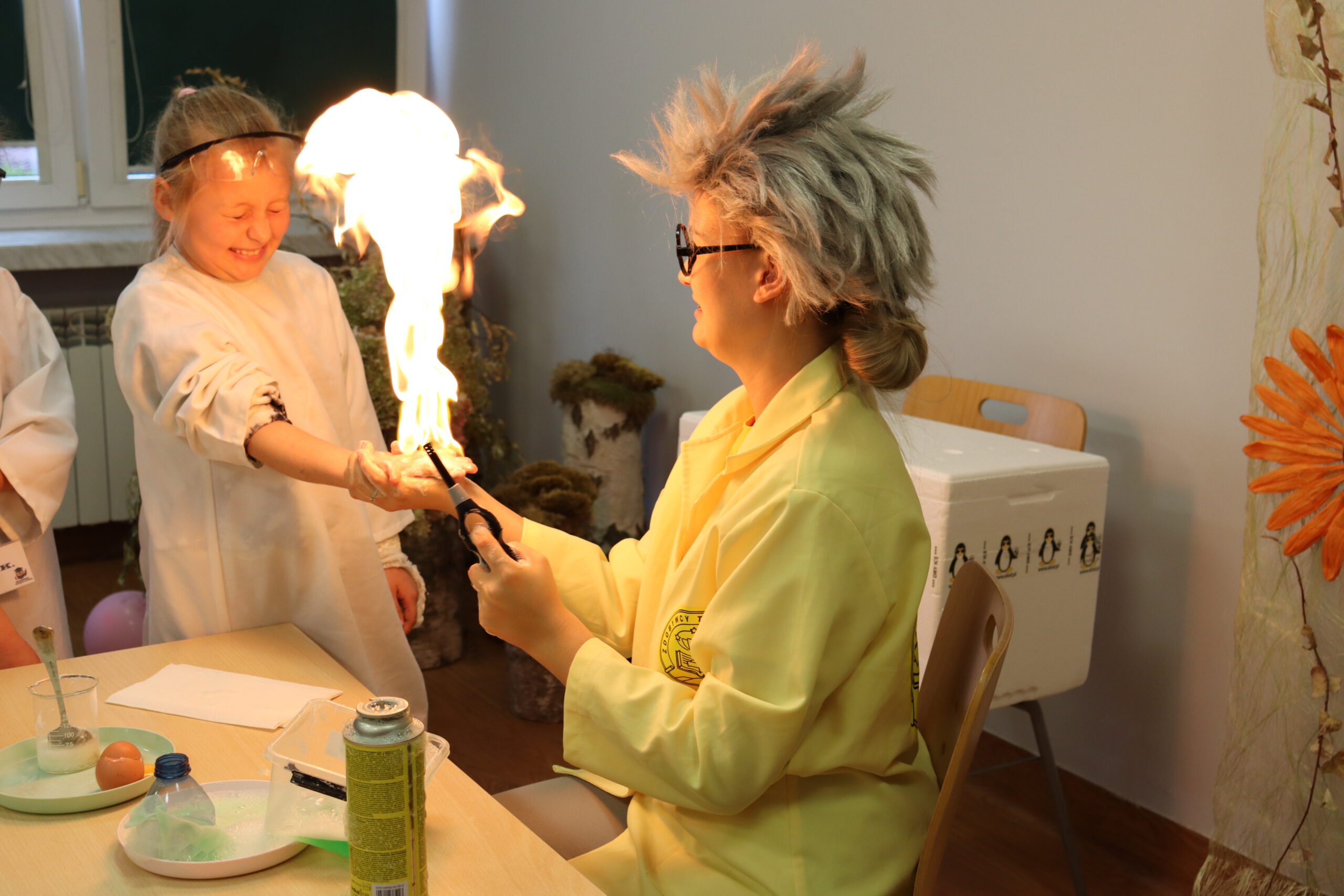 Na warsztatach chemicznych dzieci same eksperymentowały, mieszały mikstury, robiły pokaz ognistych eksperymentów czy wybuch chemicznego wulkanu.